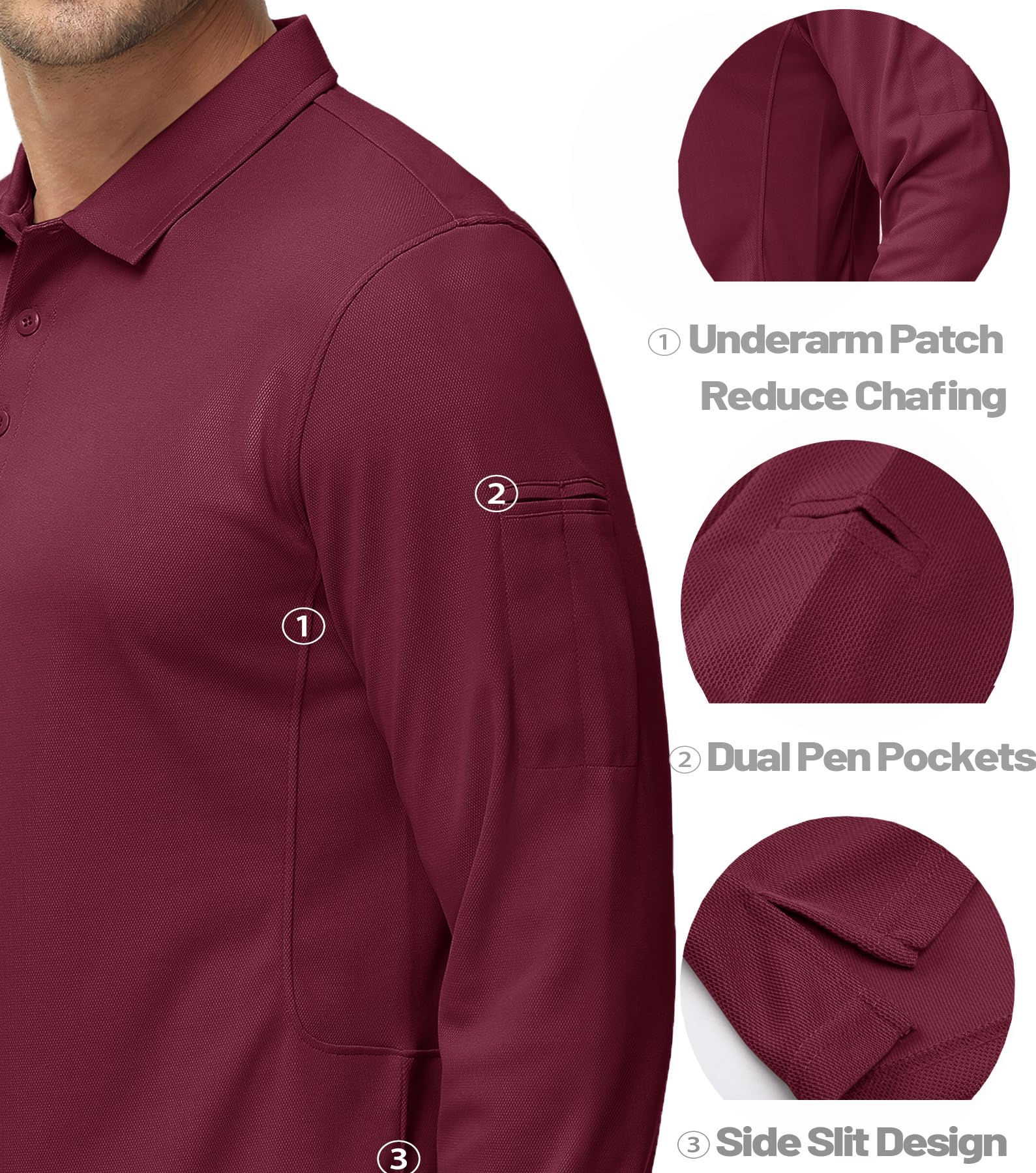- This Men's Long Sleeve Polo Shirt Features Sweat-Wicking Material That Pulls Moisture Away From The Body To Keep You Cool And Dry